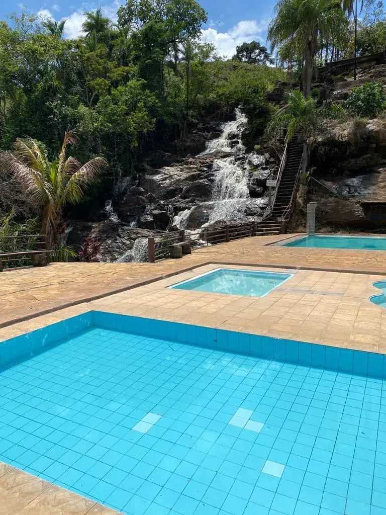 Área de lazer Piscinas, Cachoeira, lanchonete e bosque com muita área verde.